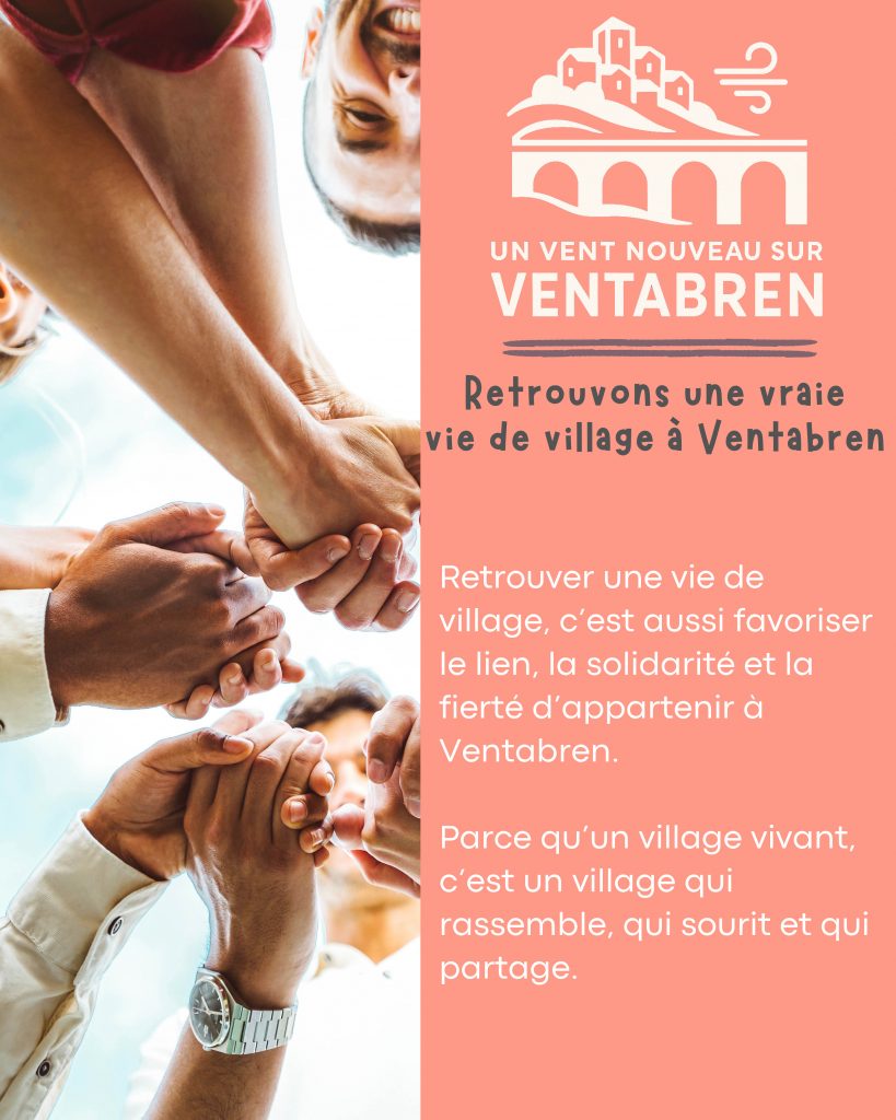Notre démarche est sans étiquette politique : nous croyons que la gestion d’un village doit dépasser les clivages pour se concentrer sur l’essentiel — améliorer le quotidien des Ventabrennaises et des Ventabrennais.