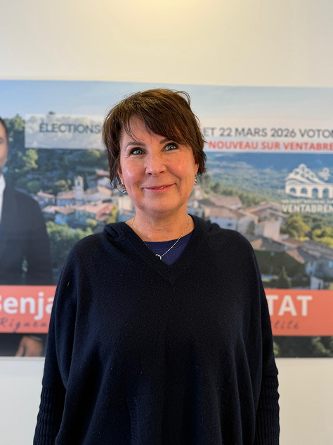 Françoise a rejoint Benjamin car elle veut apporter une certaine dynamique, développer le secteur artistique et culturelle dans notre village, et souhaite mettre son énergie et son expérience professionnelle et artistique au service de tous les Ventabrennais.